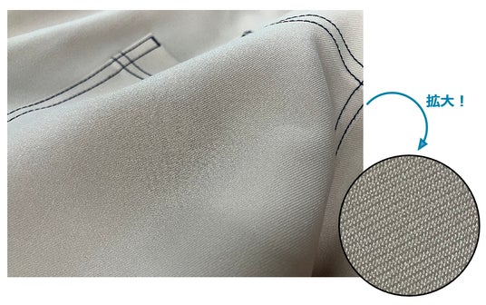 機能性を重視“出勤したら羽織るだけ” のカタチで、着替えをスムーズにという想いから飾りボタンで開閉をファスナーにしています。外からは見えない機能性も意識しています。