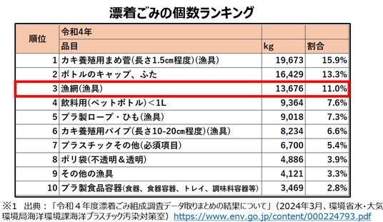 参考:漁業における海洋プラスチックごみ問題をめぐる状況と対策(令和7年5月水産庁) https://www.jfa.maff.go.jp/j/sigen/action_sengen/attach/pdf/190418-44.pdf