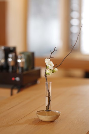 その花を生けるフラワーベースは福島県の匠たちによる一輪挿し。