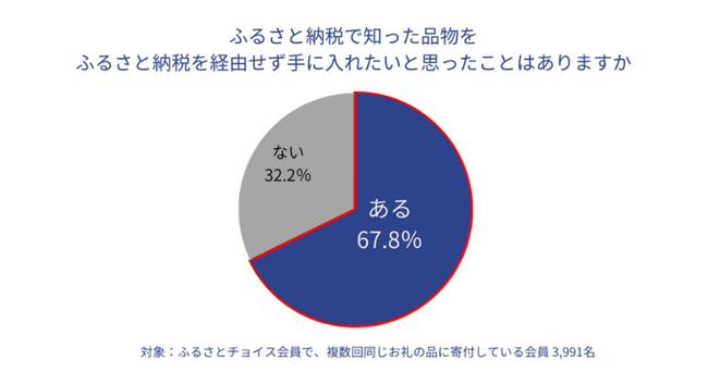 トラストバンクが、2022年2月にふるさとチョイス会員のうち、複数回同じお礼の品に寄付している会員3,991名に調査したところ、ふるさと納税で知った品物を、ふるさと納税を経由せず手に入れたいと思ったことがある人は約7割いることがわかりました。