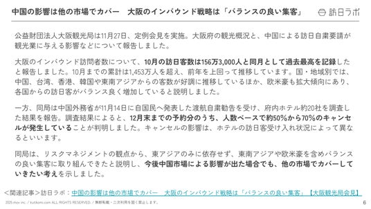 - 中国の影響は他の市場でカバー 大阪のインバウンド戦略は「バランスの良い集客」【大阪観光局会見】