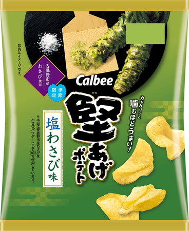 カルビー株式会社(本社:東京都千代田区、代表取締役社長:江原 信、以下カルビー)は、‟噛むほどうまい!”堅い食感が人気の「堅あげポテト」シリーズから、ツーンとしたわさびの辛みと風味が楽しめる『堅あげポテト 塩わさび味』を、2023年4月17日(月)から全国のコンビニエンスストア先行で期間限定発売(7月下旬終売予定)します。※コンビニエンスストア以外は4月24日(月)の発売(8月上旬終売予定)です。