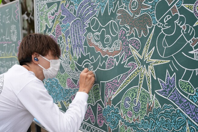 ◆シモキタに縁が深い吉本アート芸人が「下北沢」をテーマに「チョークアート」を描く◆