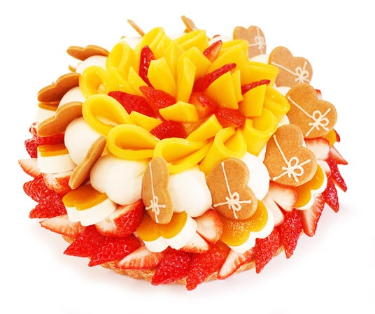 甘酸っぱいいちごをハートのマンゴーホワイトチョコムース、ハート型のクッキーとあわせて飾り付けました。相性抜群なクリームチーズのベースと共に楽しめるホワイトデー限定ケーキです。