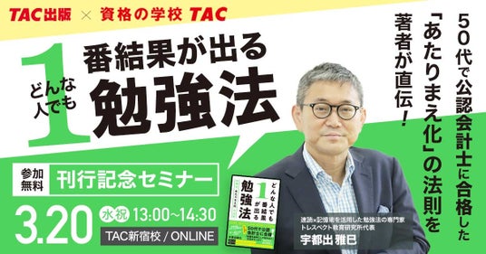 この度、TAC株式会社では、新刊『どんな人でも1番結果が出る勉強法 合格は「あたりまえ化」の法則』の刊行を記念して、試験合格に直結し、報われる勉強法のセミナーを2024年3月20日(水・祝)に開催いたします。