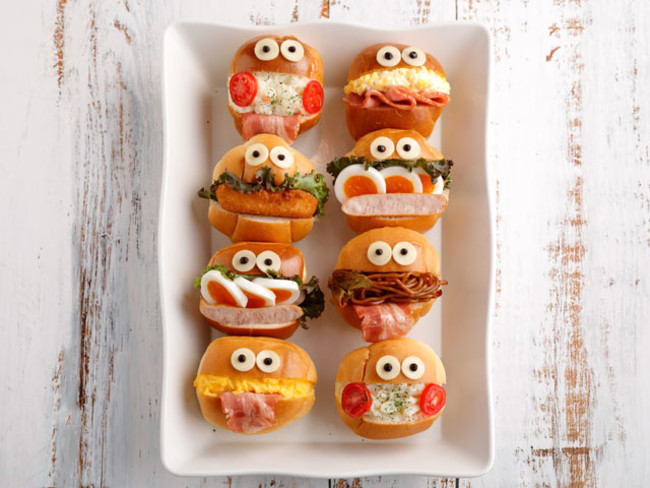 レギュラーメニューで大人気の「オープンサンド」が、 今回平日限定の週替わり実演コーナーに登場!焼きそばやスクランブルエッグなどのさまざまなトッピングを挟み、シェフが目の前で作る個性豊かな"おばけバーガー”はもちろん、自分だけの“おばけバーガー”を作れるコーナーもご用意いた