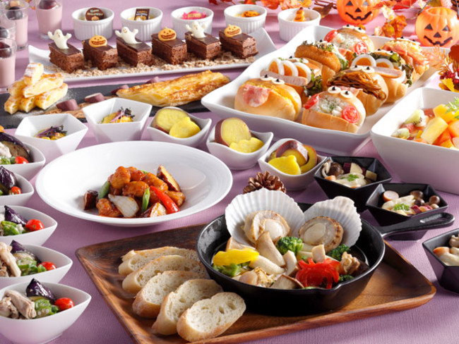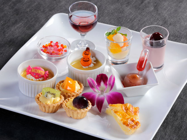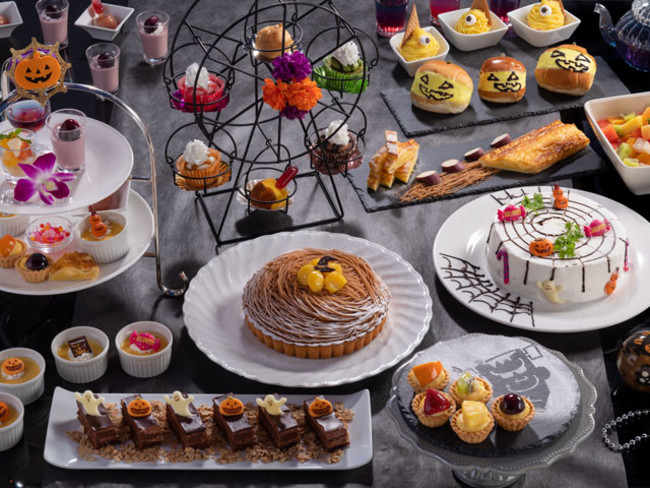 今回のオータムフェアは、「お客さまとホテルで一緒に作るわくわく楽しい“ホテル時間”」を大きなテーマに、秋刀魚や栗、かぼちゃなど秋の味覚を堪能できるお料理に加え、ちょっぴりホラーでとってもかわいい“#ホラかわ”ハロウィーンスイーツが大集合。さらに、酸に反応して色の変わる神秘的なハーブティー“バタフライピーティー”を注いでつくる「フルーツカクテル」や、スポイトに入った特製ソースをかけて味の変化を楽しめるスイーツも登場します。新鮮な旬の食材を使ったオータムグルメとハロウィーンスイーツに囲まれながら、わくわく楽しいひと時をお過ごしください。