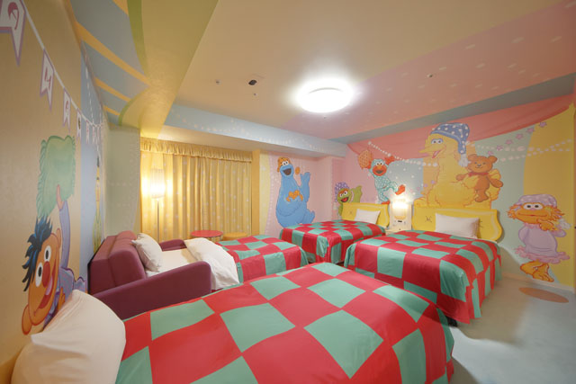 パークをイメージした館内は興奮と感動でいっぱい。パークの人気者セサミストリートをモチーフとした「ユニバーサル・セサミストリート・デザイン・フロア」は、ユニバーサル・スタジオ・ジャパンのオフィシャルホテル唯一のコンセプト・フロア。