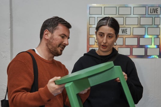そして、「HOW WE LIVE」のビジュアルアイデンティティ制作のプロセスについて、シドニーの街中で行ったリサーチから、街中で見られるタイルや階段をアイデンティティとして落とし込まれた様子をPOP UP STOREで使用した制作物を例に語り、参加者はシドニーの街とのシナジーに頷きながら聞き入る様子が見られました。