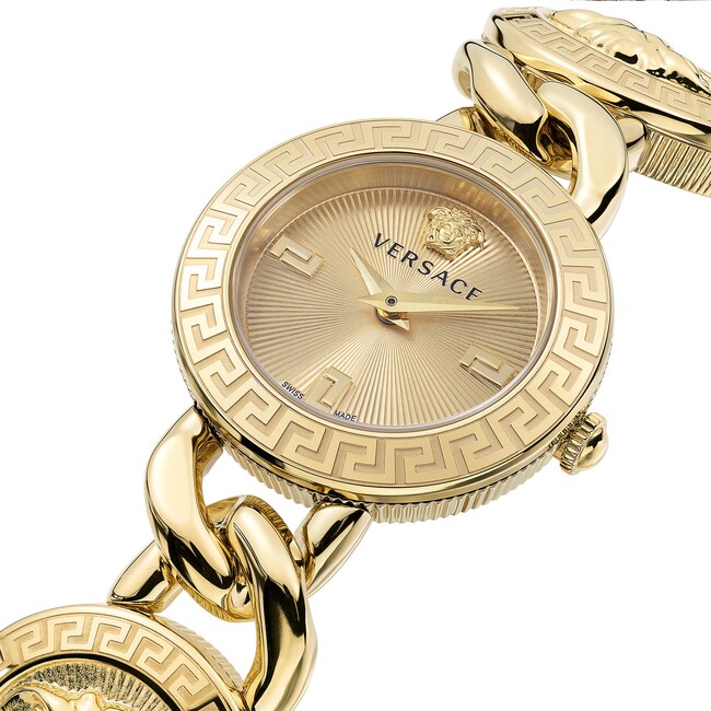 ヴェルサーチェの象徴であるメドゥーサやグレカ模様をデザインのアクセントとして取り入れ、「伝統」と「情熱」を表現したコレクションを多く展開。ヴェルサーチェの時計は、スイスメイドの高度な技術と品質で生産されています。