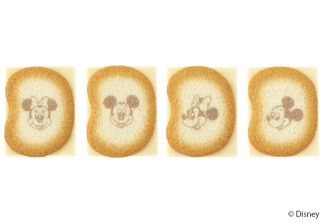 ラングドシャクッキーのデザインは、「ミッキーマウス」と「ミニーマウス」が2種類ずつ描かれた計4種類。どのデザインに出会えるかは、開けてからのお楽しみ。