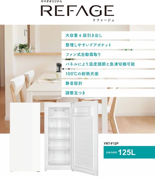 株式会社ヤマダホールディングス(本社:群馬県高崎市、代表取締役会長 兼 CEO:山田 昇、以下、ヤマダホールディングス)は、オリジナルブランド「YAMADA Products(ヤマダプロダクツ)」のサブブランド「REFAGE(リファージュ)」から、125Lの冷凍庫 YRT-F12Pを、全国のヤマダデンキ店舗(一部店舗を除く)およびヤマダウェブコム(ECサイト)にて、2026年4月25日(土)に発売します。
