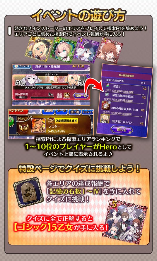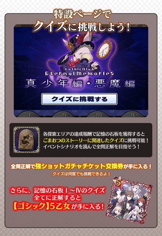 イベントの特設ページで、「ゴシックは魔法乙女」のメインストーリーに関するクイズが開催中です。