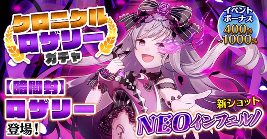 「クロニクルロザリーガチャ」では、新ショット「NEOインフェルノ」を持つ「【暗闇封】ロザリー」が登場します。