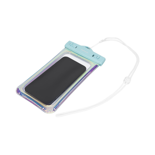 スマホを入れたまま写真撮影ができる防水・防塵のケース。ネックストラップ付き。