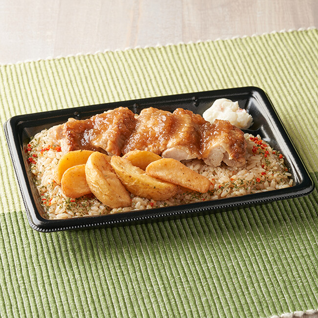 このたび『宮のたれ』をグリルチキンのソースに使った「グリルチキンガーリックライス」と、おむすびの具を『宮のたれ』で炒めた「宮の焼き飯風おむすび」を発売いたします。使用方法の異なる『宮のたれ』の味わいをぜひお楽しみください。