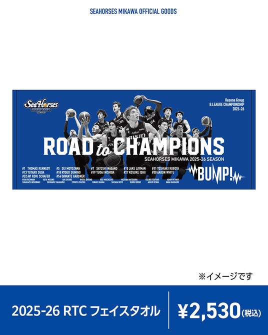 ぜひ、「ROAD TO CHAMPIONS」グッズを身に付け、選手とともに青く熱く戦いましょう!
