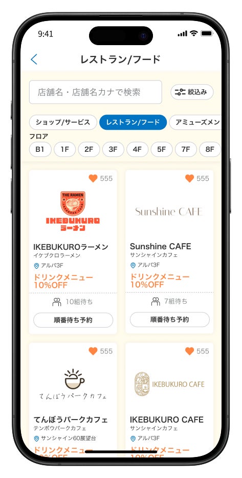 「サンシャインシティ」で利用できるお得なクーポンの配布や、ユーザーの興味に合わせてイベント情報等をお届けするアプリ「My Sunshine City」に順番待ち予約サービスが連携されます。アプリ上で行きたい飲食店の検索から混雑状況を確認し、順番待ち予約まで行えるようになり、さらに便利で手放せないアプリとなりました。