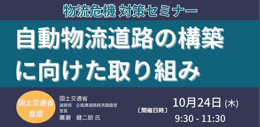 JPI(日本計画研究所)は、国土交通省 道路局 企画課道路経済調査室 室長 廣瀬 健二郎 氏を招聘し、自動物流道路の構築に向けた取り組みについて詳説いただくセミナーを開催します。