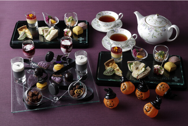 紫芋やカボチャを使った見た目もシックな色合いの大人なアフタヌーンティー。コウモリやジャックオーランタンがパーティー気分を盛り上げます。