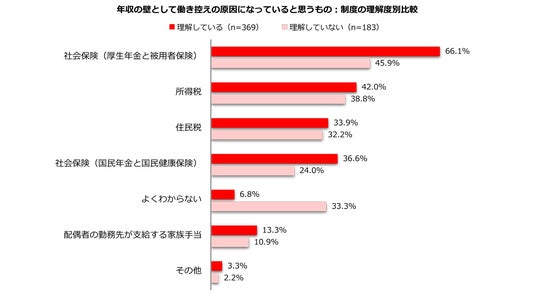 2.働き控えの原因「厚生年金と被用者保険」59.4%/制度の理解度別比較