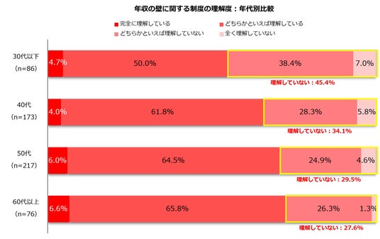 1.年収の壁に関する制度「理解していない」33.2%/年代別比較