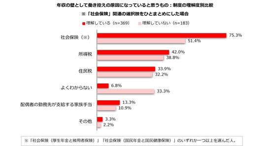 3.働き控えの原因「社会保険(※)」67.4%/制度の理解度別比較