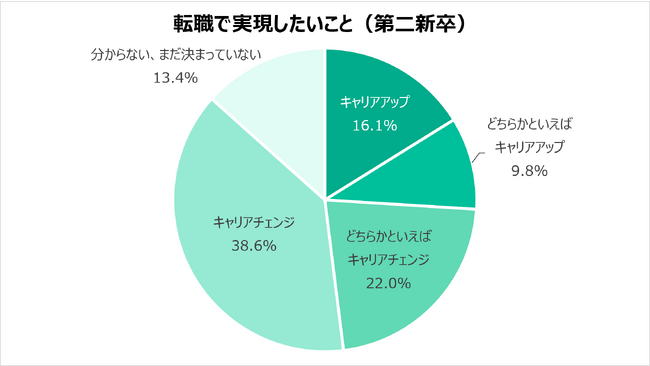 社会人経験3年未満の「第二新卒」は、60.6%が「キャリアチェンジ」を希望。第二新卒では、経験業種・職種と異なる仕事への挑戦を希望する人が6割を超えます。「キャリアアップ」を希望する割合は、25.9%でした。