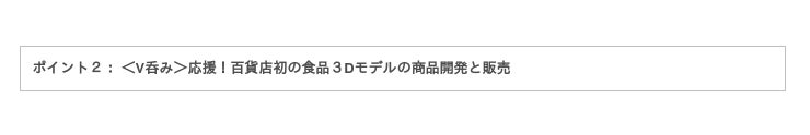 パワーアップした今回のポイントは、百貨店業界初の「飛び出すバーチャルカタログ」での商品提案です。VRならではの演出で食品の魅力を表現しました。3Dで飛び出し直接ECへのリンクで購入できるスイーツ商材5点に加え人気のビールなど32アイテムを表示、各カテゴリのECページへつながり合計500点以上が購入可能となります。また、リアル食品の販売に加え、あらたに「食品3Dモデルの販売」も実施いたします。