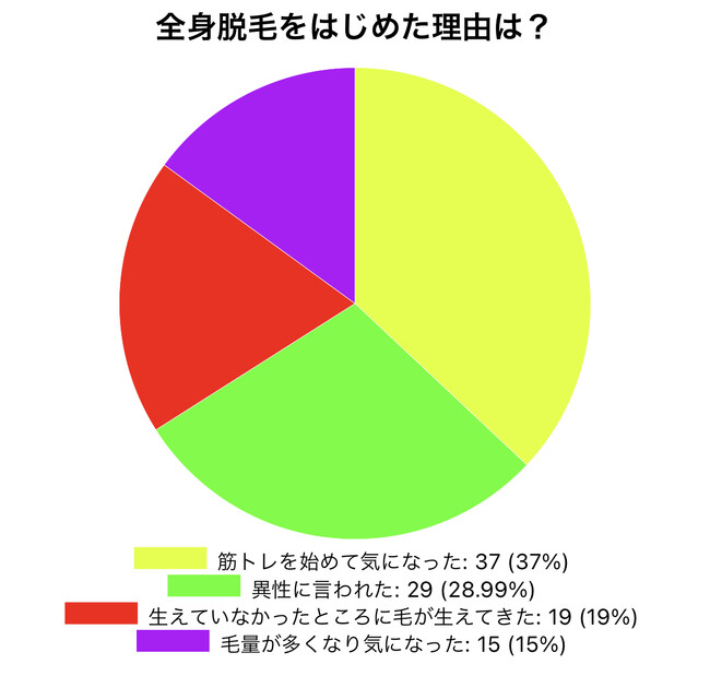 また、レディース脱毛が当たり前になっている事から、異性に言われて始めた方も多かったです!