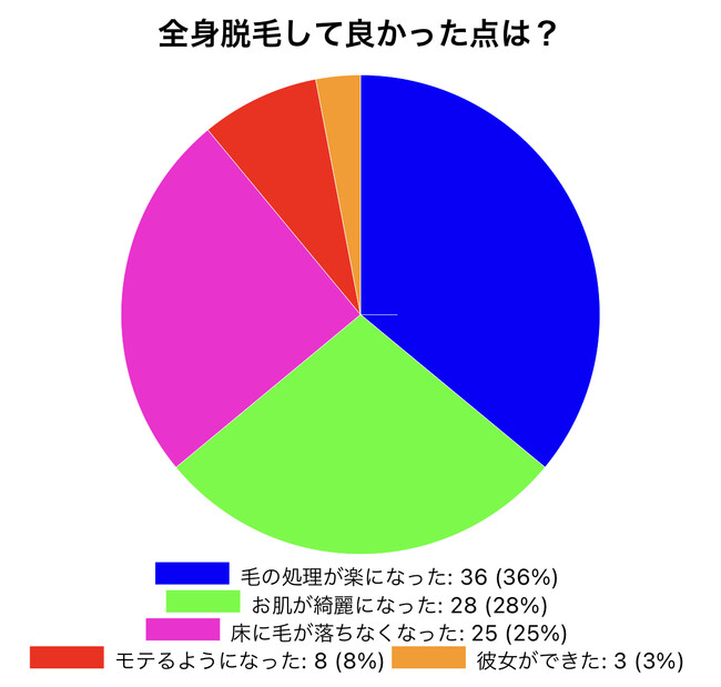 全身脱毛は手の届かない部位などの処理がなくなるというメリットを感じた方が多かったです!
