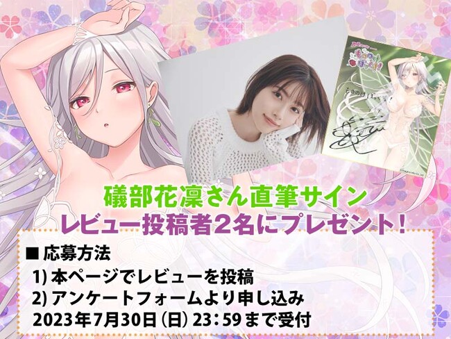 アリア役・礒部花凜さんのサイン色紙を、DLSiteで作品を購入しレビューを書いてくださった方の中から抽選で2名様にプレゼント! さらに、声優グランプリASMRのTwitter上でもフォロー&リツイートキャンペーンを開催。