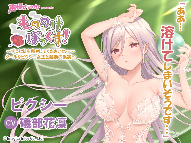 声優グランプリが手掛ける、不思議でかわいい”もののけ”たちとの心温まる交流を描いたASMRシリーズ『もののけぼっくす!』。長縄まりあさん、本渡楓さん、立花日菜さんが出演した第1弾~第3弾に続き、第4弾『ずっと私を癒やしてくださいね……クールなピクシー女王と禁断の果実』が好評発売中!そんな本作でピクシーの女王・アリアを演じた礒部花凜さんにインタビュー。作品の魅力や今後挑戦してみたいシチュエーションなどについてお聞きしました!