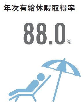 業績推移や特許件数などに加え、年次有給休暇取得率などでわかる働きやすさを数字とアイコンを使って1ページにまとめて紹介しています。