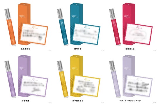 フレグランスには各ライバーの複製メッセージ入り特典カードが封入されております。フレグランスとあわせてぜひお楽しみください。