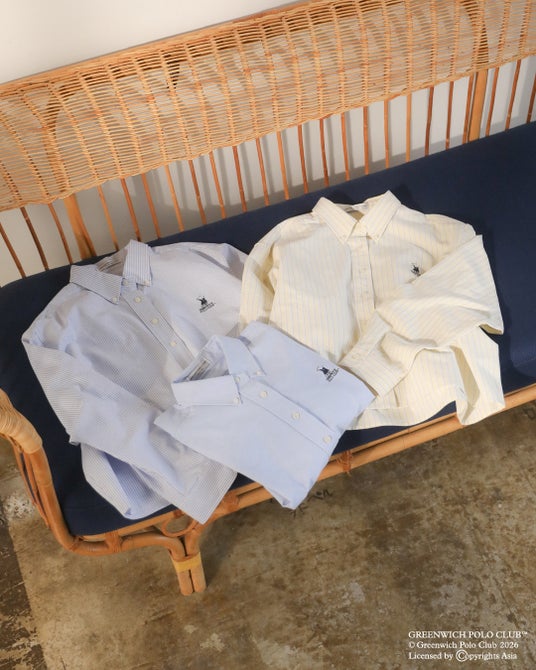 第2弾は、「GREENWICH POLO CLUB(TM)」の“アメリカントラッド”なスタイルを軸に、Green Parksならではの女性らしいシルエットやトレンドデザインで表現したアイテムを全6型展開。アイテムには、レモンイエローやサックスの春らしいトレンドカラーを取り入れ、「GREENWICH POLO CLUB(TM)」のロゴをワンポイントであしらいました。