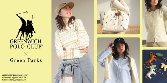 株式会社ストライプインターナショナル(本社:岡山県岡山市、代表取締役社長:川部将士)が展開するレディースブランド「Green Parks(グリーン パークス)」は、「GREENWICH POLO CLUB(TM)」とのコラボレーションアイテムを、2026年2月13日(金)に全国のGreen Parks店舗および自社ECサイト「STRIPE CLUB」にて発売いたします。