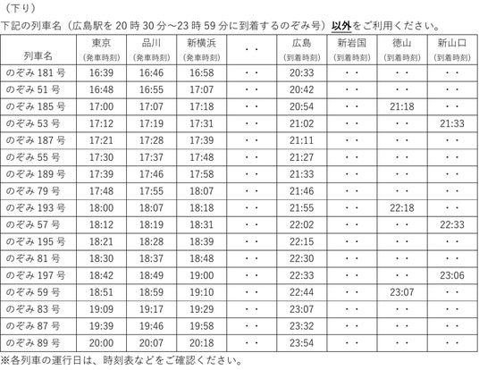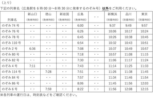 新山口・徳山・新岩国・広島⇔ 新横浜・品川・東京