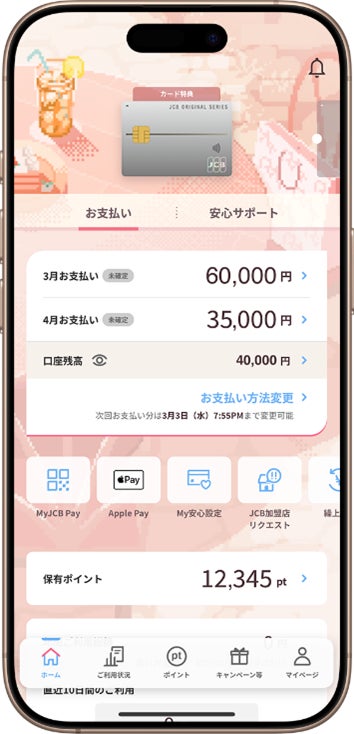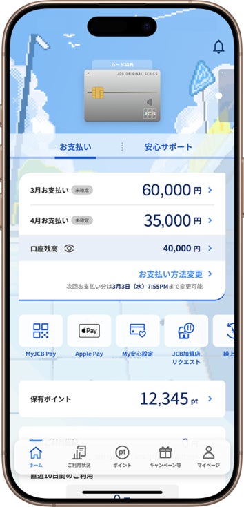 株式会社ジェーシービー (本社:東京都港区、代表取締役兼執行役員社長:二重 孝好、以下:JCB)は、MyJCBアプリに「アプリ着せ替え」、「明細検索・集計機能」、デジタルコンシェルジュに「宿泊施設のご提案」等の機能を搭載しました。