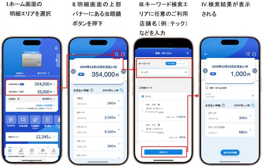 ご利用店舗名などのキーワードでご利用明細が検索できるようになりました。