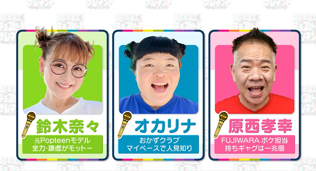 ■出演者:チョコレートプラネット、原西孝幸(FUJIWARA)、鈴木奈々、オカリナ(おかずクラブ)