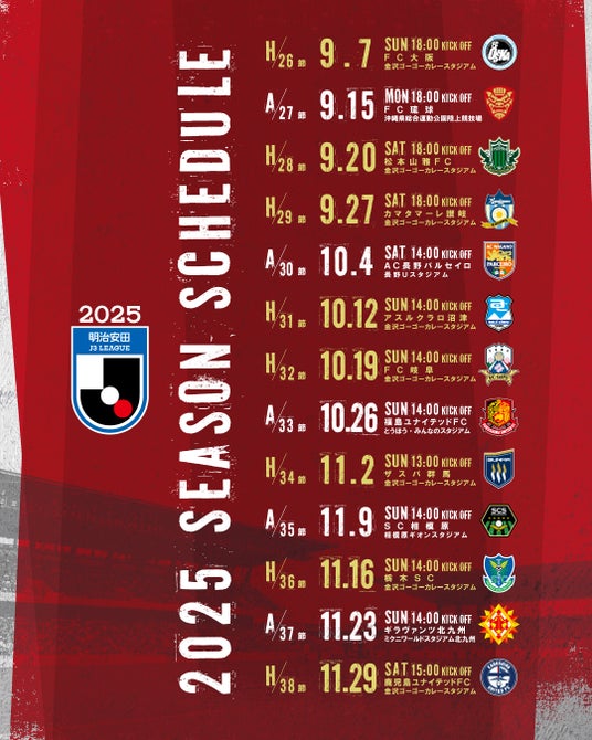 2025シーズン ツエーゲン金沢後半戦 試合日程