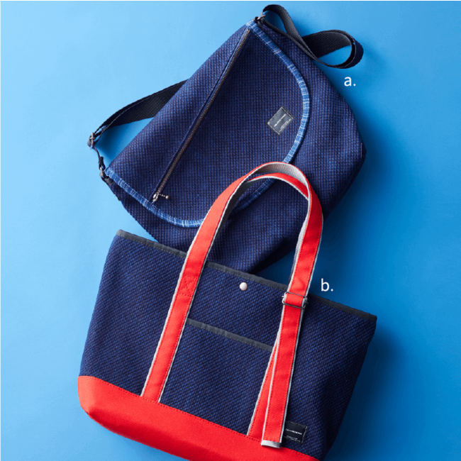 宮城『ENN LIVING WORKS』〈エン リビング ワークス〉“生まれは日本、想いと価値を”がコンセプト。剣道着にも使われていた“藍染刺子生地”とカラフルな帆布を組み合わせたモダンなバッグ。