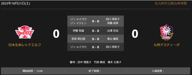 ノジマTリーグ 2023-2024シーズン 公式戦 10月21日開催の「日本生命レッドエルフ vs 九州アスティーダ」のオーダーを発表いたします。