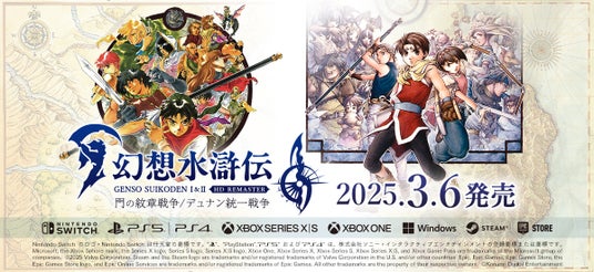 株式会社コナミデジタルエンタテインメントは、『幻想水滸伝 I&II HDリマスター 門の紋章戦争 / デュナン統一戦争』(Nintendo Switch(TM)、PlayStation(R)5、PlayStation(R)4、Xbox Series X|S、Xbox One、PC)を本日発売したことをお知らせします。