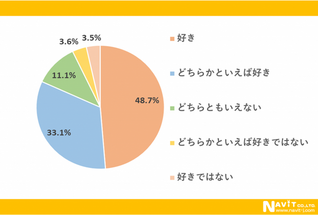 スナック菓子は好きかどうかについては、「好き」が48.7%、「どちらかといえば好き」が33.1%という結果になり、合わせると80%以上の人がスナック菓子を好きだと回答していました。