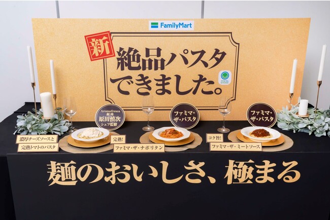 株式会社ファミリーマート(本社:東京都港区、代表取締役社長:細見研介)は、継続して取り組んでいる5つのキーワードである「もっと美味しく」、「『あなた』のうれしい」の一環として、麺のおいしさを極めた絶品パスタ「ファミマ・ザ・ミートソース」、「ファミマ・ザ・ナポリタン」、「Aromafresca銀座 原田慎次シェフ監修 7種チーズ使用!濃厚チーズソースと完熟トマトのパスタ」の3種類を発売しており、発売初週でパスタカテゴリーにおいて、前年比約110%(※)を達成するなどご好評をいただいております。