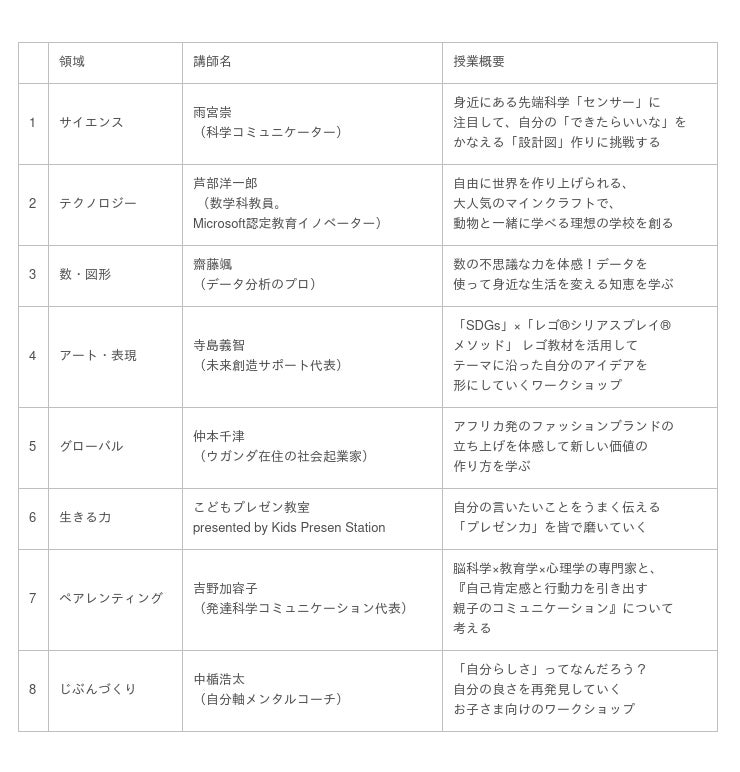このような状況を踏まえて、子どもの興味を広げ、それに打ち込んでもらう機会を作るために、このたび「みらいキャンパス」を開講します。