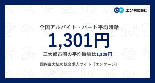 エン株式会社(本社:東京都新宿区、代表取締役会長兼社長:越智通勝)が運営する国内最大級の総合求人サイト『エンゲージ』(https://en-gage.net/)で、2025年10月度の「全国アルバイト・パート募集時平均時給調査」をまとめましたので、ご報告致します。