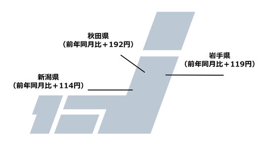 - 前年同月比の上昇額が大きい都道府県は、秋田県、岩手県、新潟県。
